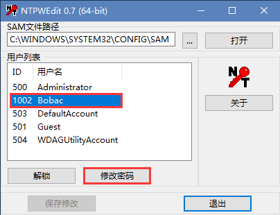 13、选择你需要修改密码的用户后,点击下方的【修改密码】。