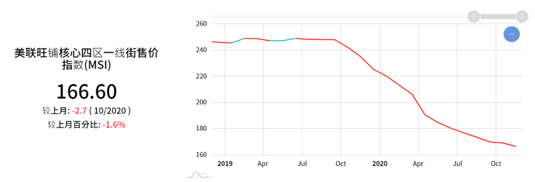 根据差饷物业估价署的指数,相比2018年或2019年的高峰,零售商铺累计跌17%。期间商用物业交投比例回落,例如商铺季度成交宗数由近460宗降至不足200宗。比比皆是的空置店铺也带来了租金的腰斩。