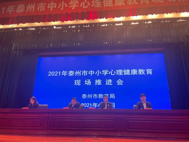 为进一步推进全市中小学心理健康教育工作,4月9日下午,2021年泰州市中小学心理健康教育现场推进会在江苏省黄桥中学召开。泰州市委教育工委书记、泰州市教育局局长万永良,泰州市教育局副局长王俊鹏、基教处负责人陆全贵、督导处处长王艳、基教处副处长赵长有以及各市(区)教育局局长出席会议。各市(区)教育局分管副局长、相关处(科)室负责人、心理健康教育教研员以及全市中小学各校分管副校长等400余人参加了会议。