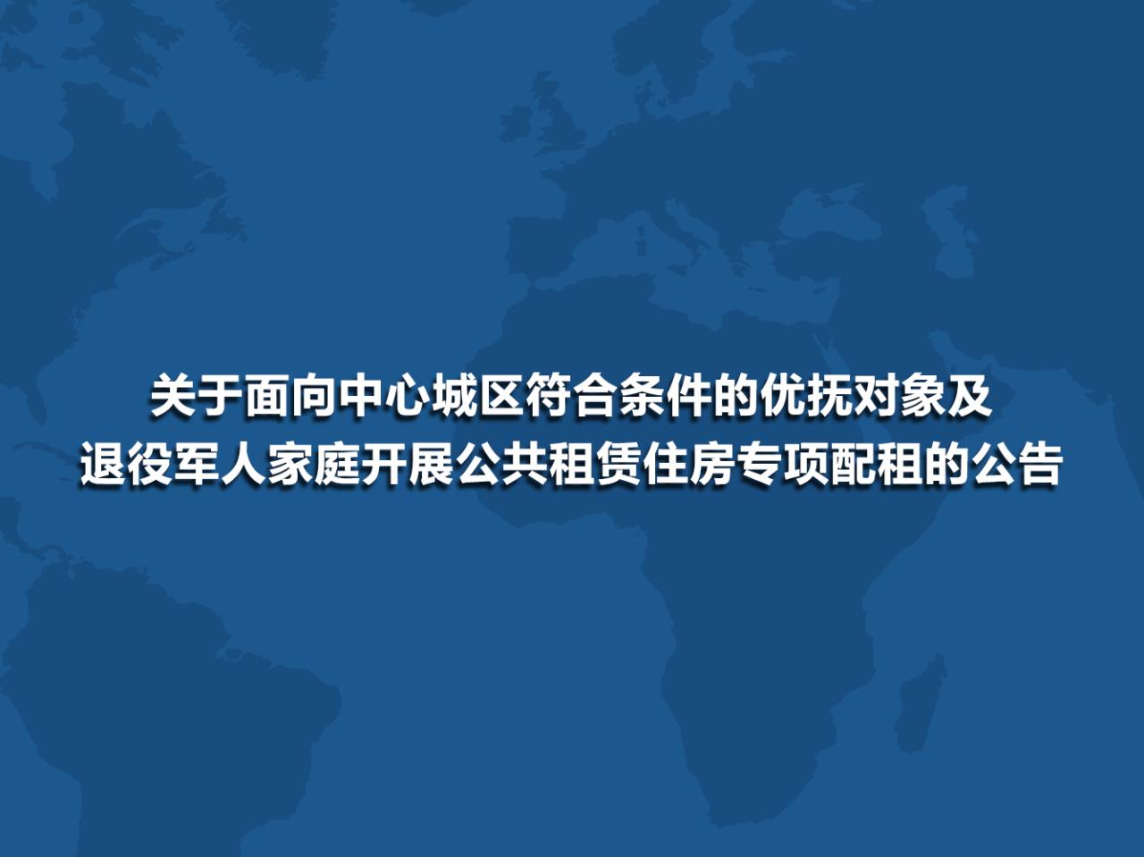 此次专项配租的对象为2020年7月31日(含)前通过“三审两公示”程序取得有效的保障性住房资格备案,且尚未配租、配售保障性住房的中心城区优抚对象及退役军人家庭。