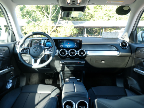 除了同级少有的7座布局外,GLB的售价还比较亲民,29.28万的起步价,终端还有4、5万的优惠,实际的起步价只要24、5万。另外别看它的售价亲民,但配置和用料并不含糊,双连屏设计、分段式电动天窗、64色内饰氛围灯,豪华感的营造还是很到位。
