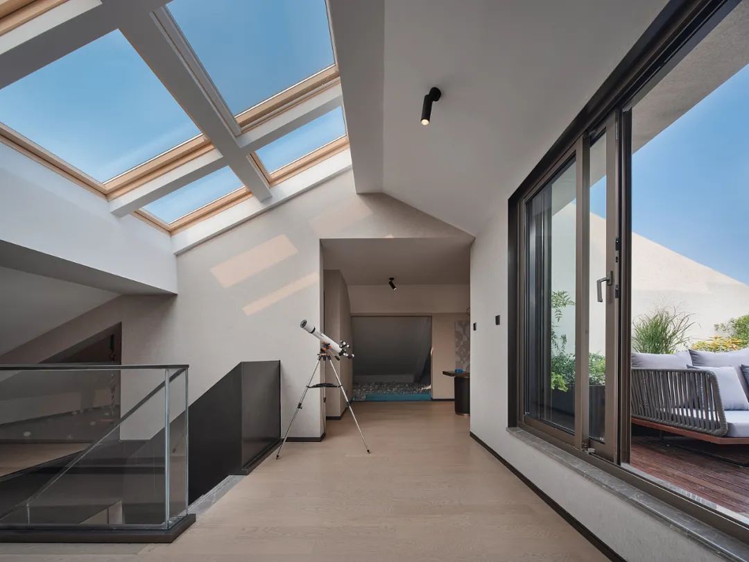 露台是可以在家观景的空中花园,入住后,一家人可以围坐一起,在月色下欣赏院内的迷人景色,旁边还簇拥着自己栽种的各色绿植鲜花。