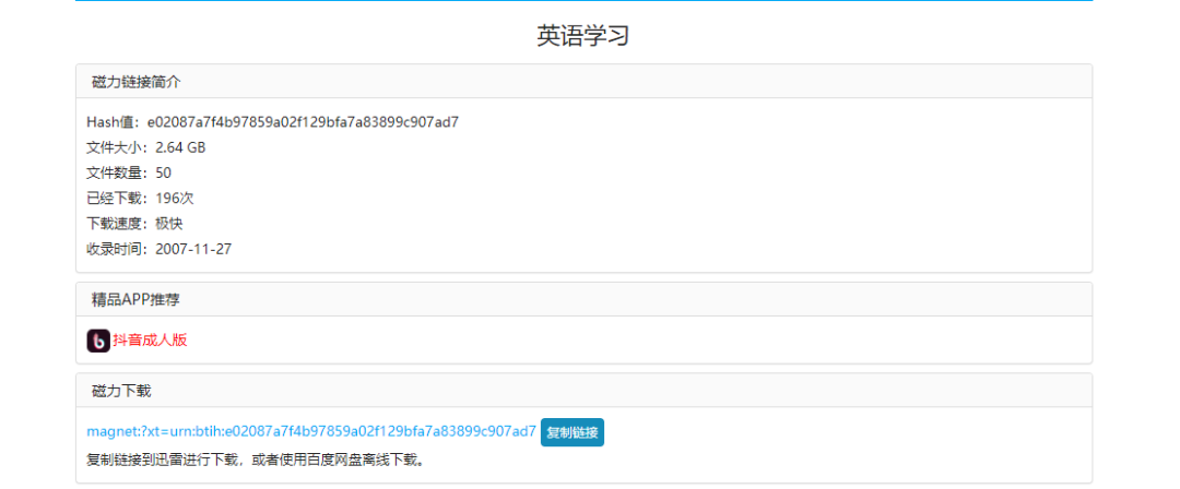 不过在电脑端使用就比较清爽,几乎没有广告打扰。磁力资源的下载方式,只需要直接点击磁力链接就可以跳转到磁力下载工具进行下载。