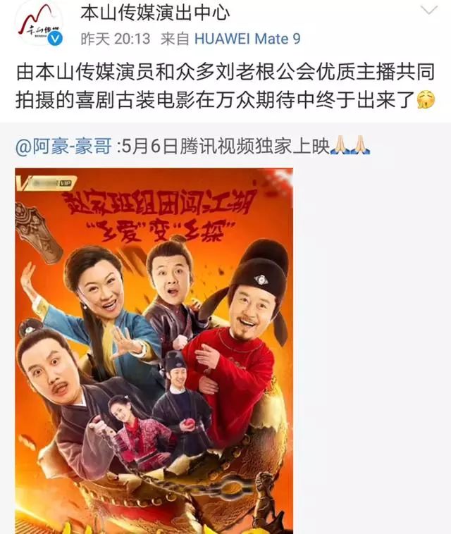 前不久,本山传媒演出中心官方平台发布了一条消息,喜剧古装电影《笑盗江湖》即将上线,亦如这几年...